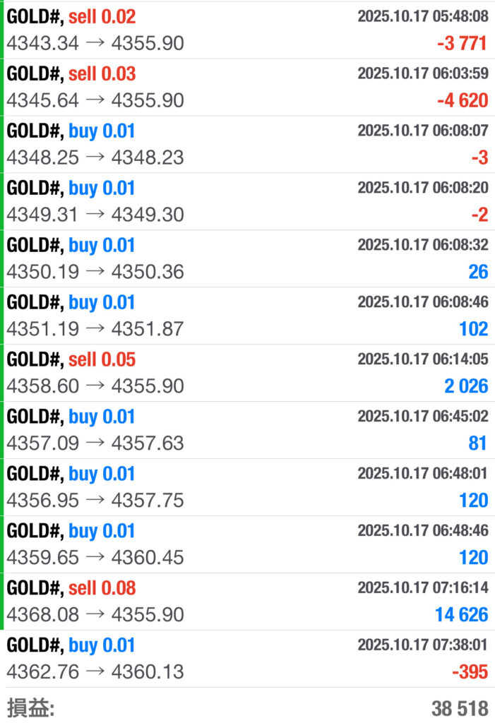 またまたGOLDの史上最高値更新。戦争や米ドルの覇権が揺らぐなど、GOLDが買われる理由が世界に広がっているのでしょうね。その勢いはとどまることを知らず、暴力的に急上昇しています。EA稼働も、臨機応変な対応をして裏目に出ることもありましたが結果ヨシです。