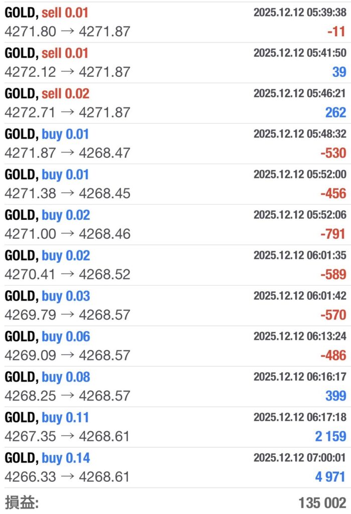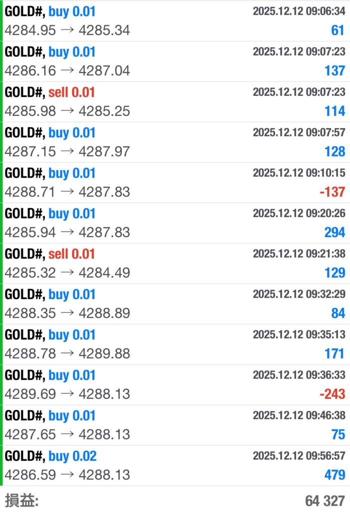 そろそろEAも稼働を控えたほうがいいような年末相場に突入です。各自のリスク許容値と相談しながら、無理のない稼働をしていきたいところですね。