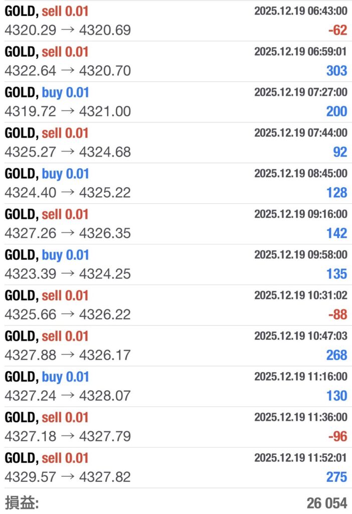 クリスマス相場ですね。まったくと言ってエッジのかかるようなイベントはありません。その分流動性低下から相場に不確実性が増すことが考えられ、EA稼働には向いているとは言えませんね。