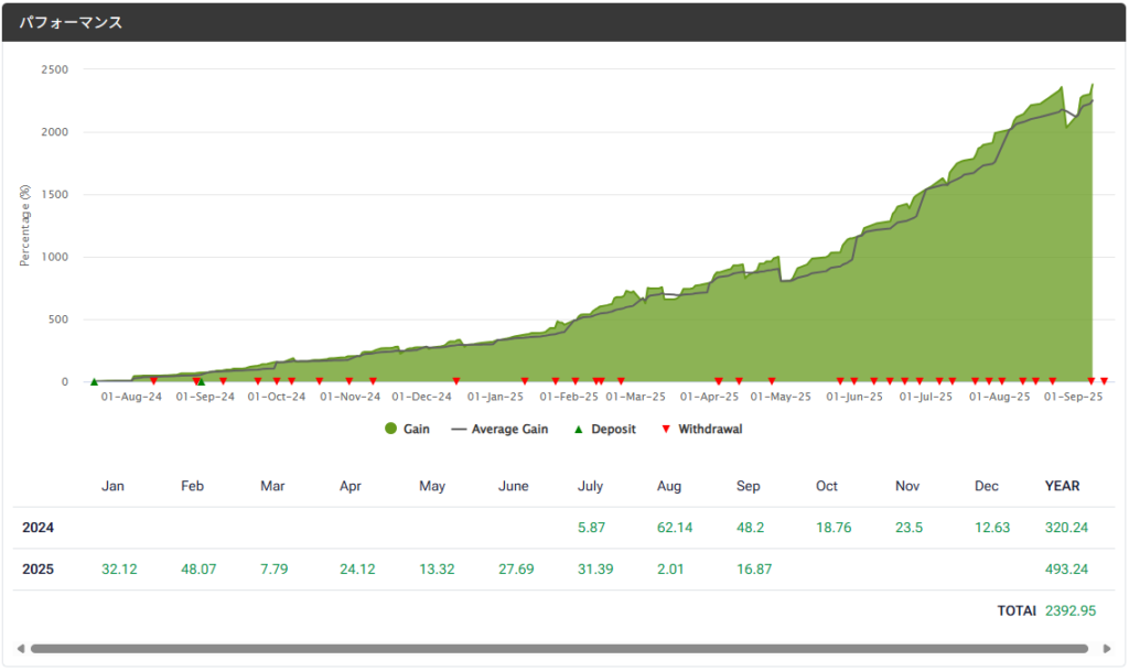 昨年よりロスカは未発生、危ない時は損切りも辞さない安全な運用が魅力。爆益狙いのトレードではないのに、月間60%の利益を叩き出すことも…!