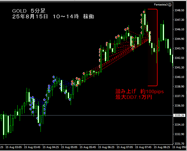 この日は新規ポジションエントリー停止してから15分後に最終決着。売りと買い一方だけに絞る戦略が、逆行が進んだ場合にDDがあっという間に増えてしまう『恐怖!DD倍々進行』の抑止に貢献。積みあがっても反転時にトレールで上手に利益を伸ばしてくれる賢さと、短い稼働時間によるメンタルへの優しさが嬉しいです。